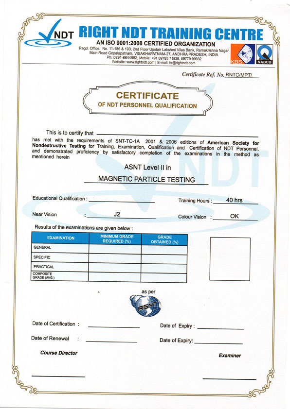 NDT practical training program for Freshers & experienced Engineers, Inspectors & Technicians