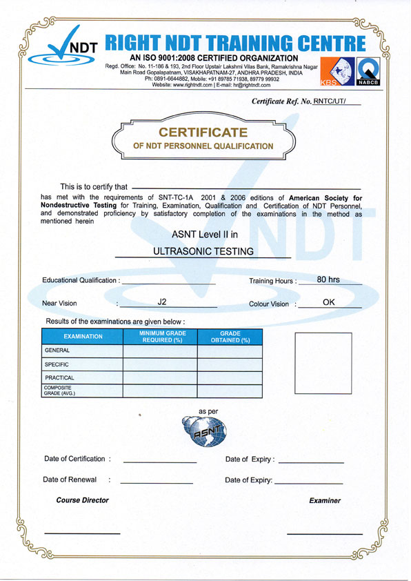 NDT practical training program for Freshers & experienced Engineers, Inspectors & Technicians